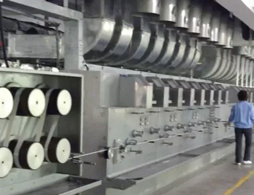 用途:純綿、ポリエステル綿、化学繊維およびそれらの混紡織物の坪量50~900g/m2の広幅浸漬およびヒートセットに適したステンター機です。
